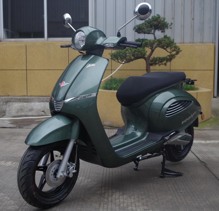 Die Designerkönigin Die Bella R lehnt sich an die edle Linie klassischer Vorbilder im Scooterbau an - Klare Formen, kein Schnickschnack. Die Blinker sind geschickt in die Karosse intergriert, die Chrom-Applikationen stehen ihr ausgezeichnet, und die Längsrippen an den Fahrzeugseiten strecken die klassische Formgebung hin zu einem zeitgenössischen Kunstobjekt.